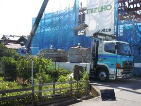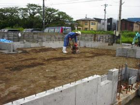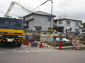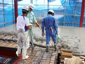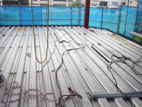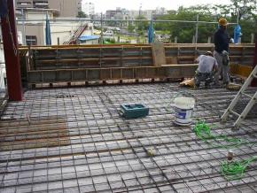 2F床のワイヤーメッシュ敷き中です。また立ちあがり型枠も工事しております。