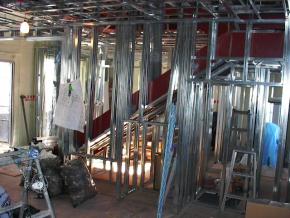 1Fの間仕切りの下地工事がほぼ完了しました。