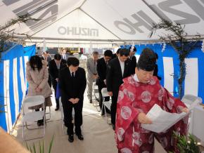天候にも恵まれ地鎮祭を執り行いました。多くの関係者の方々にご出席賜りました。
