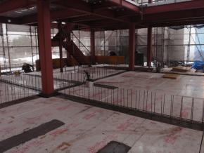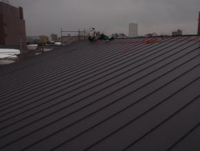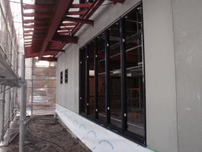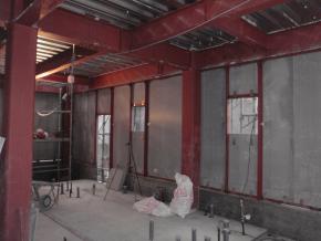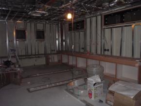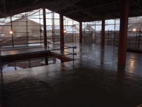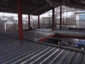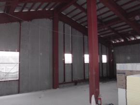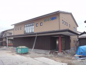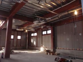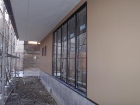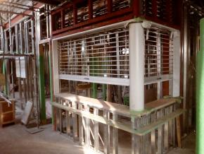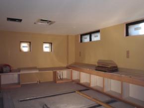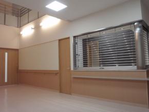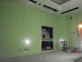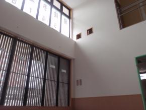 待合室の吹き抜け部分のクロス貼りが完了しました。