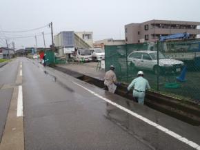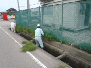 現場周辺美化活動として周辺の草むしりを行いました。