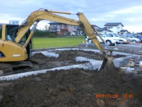現在、埋め戻し中です。23日に鉄骨建方の予定です。