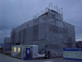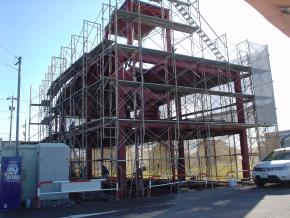 鉄骨建方も完了し、仮設の足場を掛けました。