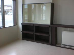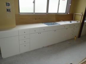受付になります。ロゴを受付背面の壁に取り付けました。