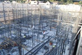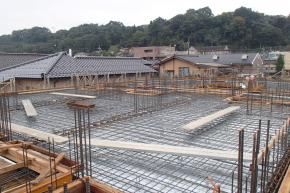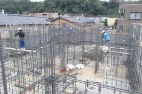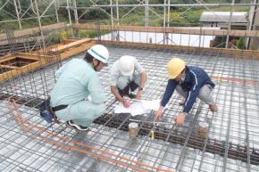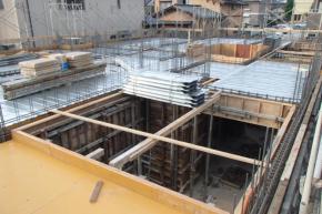 デッキ敷設が完了し、スラブ配筋を開始しました。