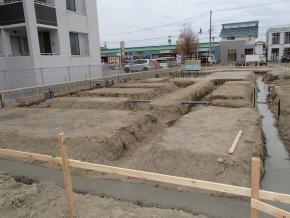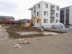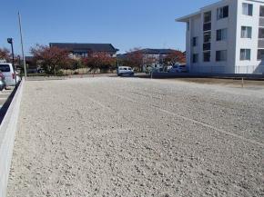 土地造成後、駐車場部の地盤改良の後、砕石を敷いた状態です。