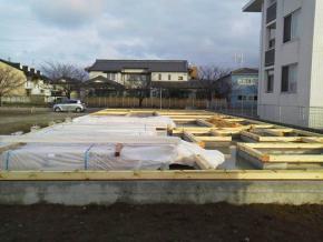 土台敷きが完了し、今週末予定の建て方の準備中です。