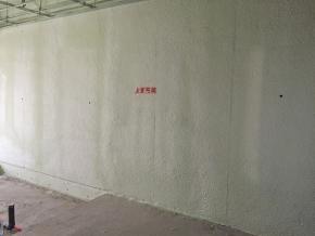 壁一面にウレタンを吹き付けています。