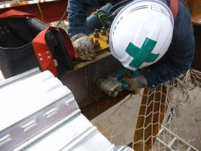 安全対策で墜落、落下防止の水平ネットを張りました。