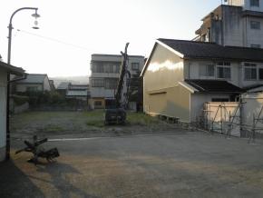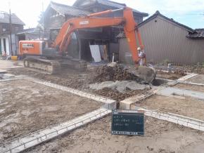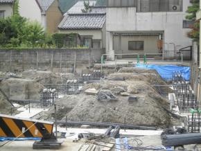 工事車両搬入用の仮設乗入れ工事が完了し、これから地盤改良工事に入ります。