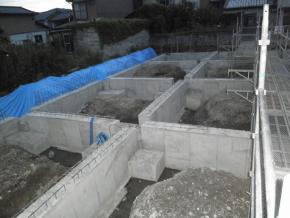 組積工事が終わり、1階の土間コンクリートを打ちました。