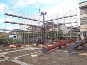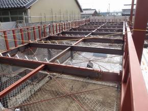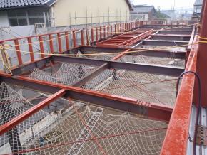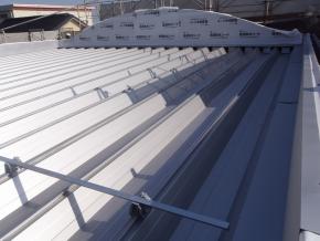 折板屋根を葺くためにタイトフレームの設置が完了しました。