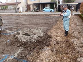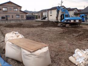 表層地盤改良工事を開始しました。