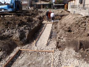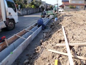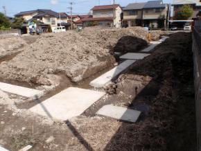 外周部、側溝工事を開始しました。