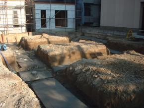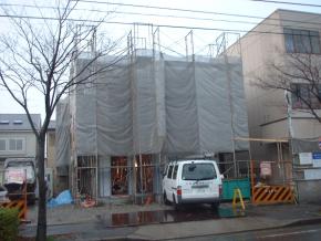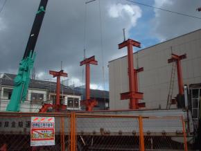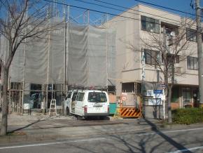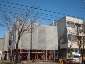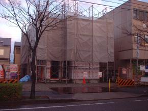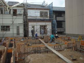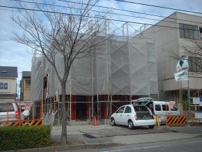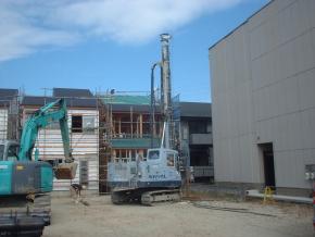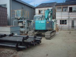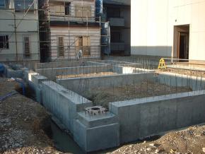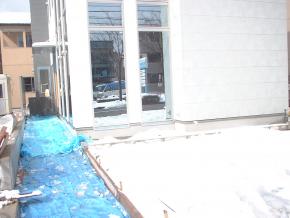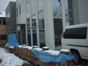 外部では、擁壁のコンクリート打設が完了いたしました。しばらく、養生いたします。