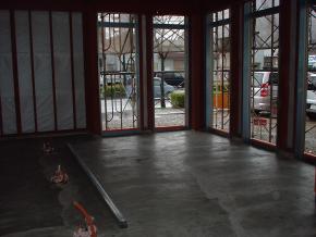 内部 1階床ビニルタイル貼りが完了いたしました。