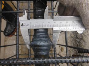 ガス圧接のつなぎ部、外観寸法を確認しました。