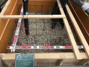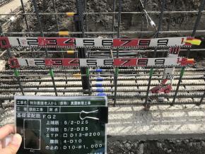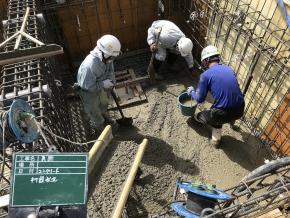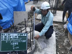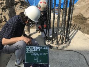 土間、立上り壁コンクリート試験実施状況です。