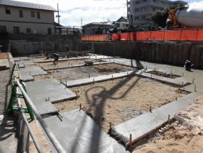 1階部分の捨てコンクリート打設状況です。