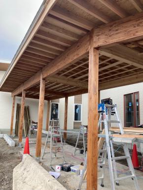 玄関ポーチ設置作業中です。
