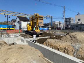 基礎埋め戻し作業中です。