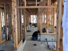 内部床下配管工事中です。