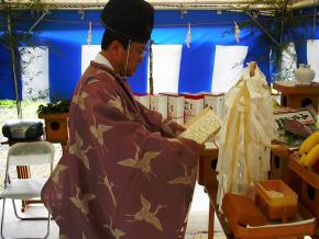 祝詞奏上で工事期間中の安全祈願及び開業後の繁栄をお祈りしていただきました。