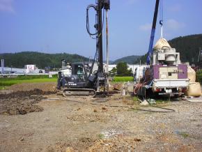 地盤改良工事に着手しました。