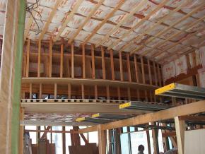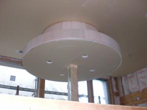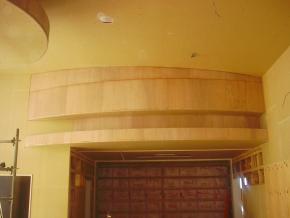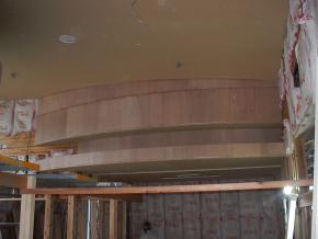 受付上部の間接照明ボックスになります。1Fは天井ボード貼り中です。