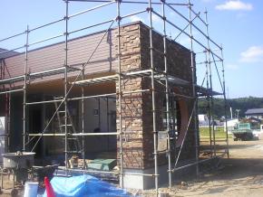 外壁のタイル貼りが完了しました。