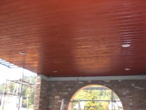 ポーチの天井杉板の塗装が完了しました。