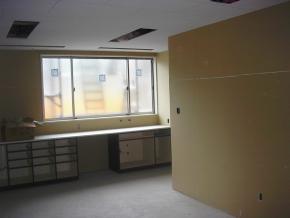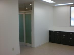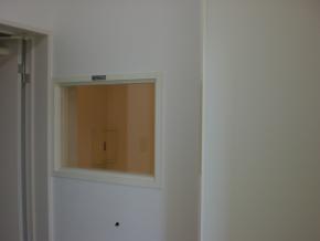 レントゲンの操作室です。覗き窓は院長先生に工事中に現場で実際に高さを確認していただき取付高さを決めました。図面上だけで決めると後で見にくい等の問題も発生しますので必ず現地で見ていただき決めるようにしています。