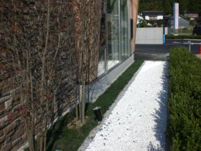 外部待合室前に植栽と玉砂利を敷きました。