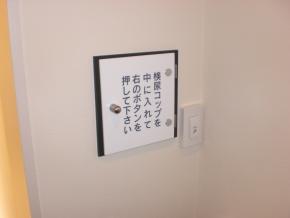 検尿コップ置き場です。ご高齢の方のために文字を大きくしました。