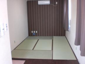 スタッフルームです。畳敷きの休憩スペースとフローリング敷きの更衣スペースを分けました。院長先生の意向で院長室より大きい部屋としました。