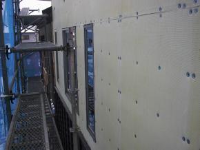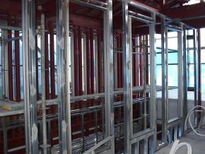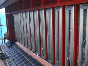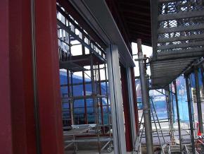 2Fから待合室吹き抜け部分のサッシ取り付けました。