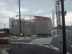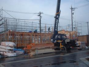 建方が完了し、屋根工事中です。