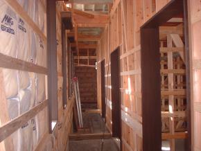 内部は造作工事中です。ドア廻りの枠を取り付けました。