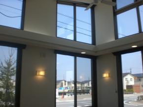 建物完成しました。待合室は吹き抜けになっており開放的な空間になっております。