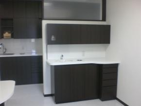 消毒室と診察室側作業台の壁に扉を付けてあります。