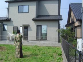 外壁面に断熱材を吹き付けました。