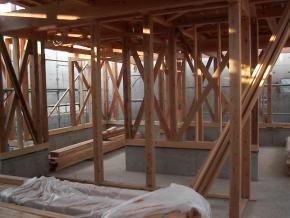 2F木造部分の建方完了しました。