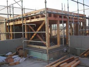 現在、2Fコンクリート打設に向けて型枠、鉄筋工事中です。