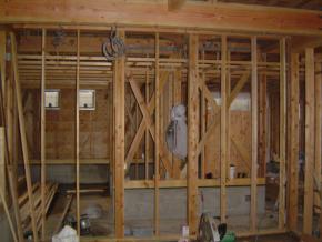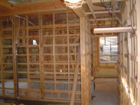2F木造部分は壁下地工事中です。