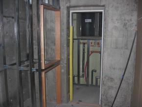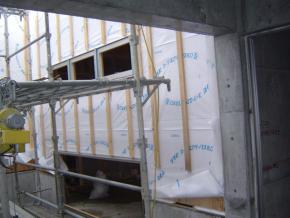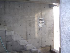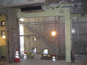 階段室の壁です。硝子はまだ入っておりません。