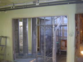 内部建具廻りの枠を取付中です。
