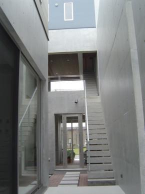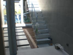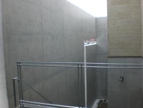 2Fテラス部分になります。コンクリート打ち放しの仕上げになります。3F書斎に上がる階段になります。