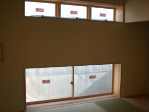 2F洋室はプライバシーを確保しつつ光を取り入れるスリットをコンクリートの壁に入れております。