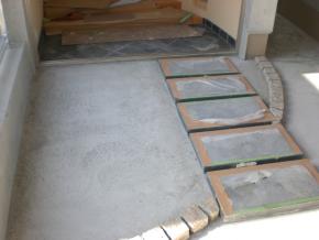中庭の床タイルを貼りました。