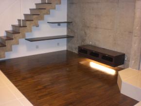リビングです。一段下げてソファーを置きます。